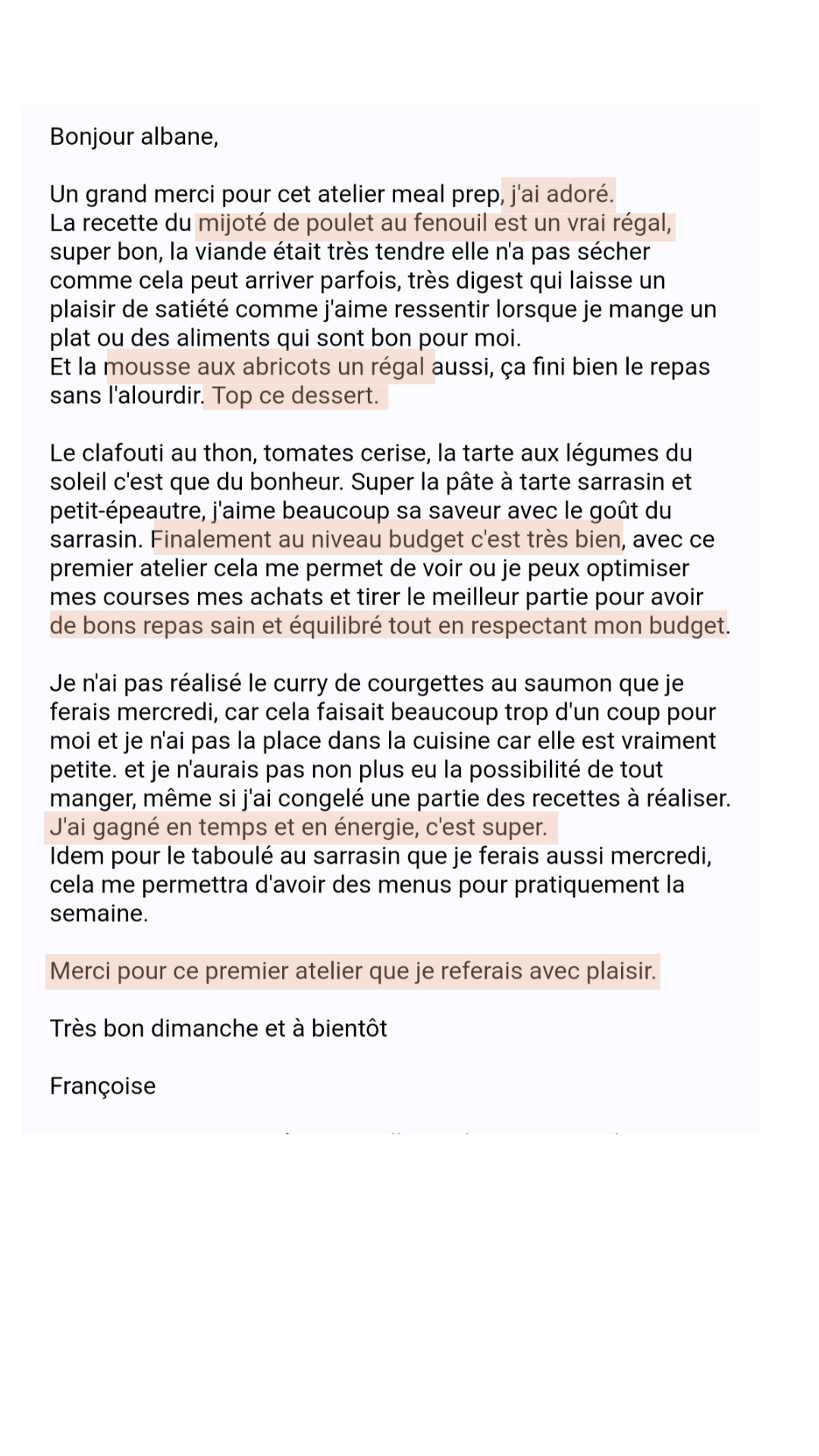 Dès votre inscription, vous recevez directement dans votre boîte mail la liste des ingrédients à prévoir.